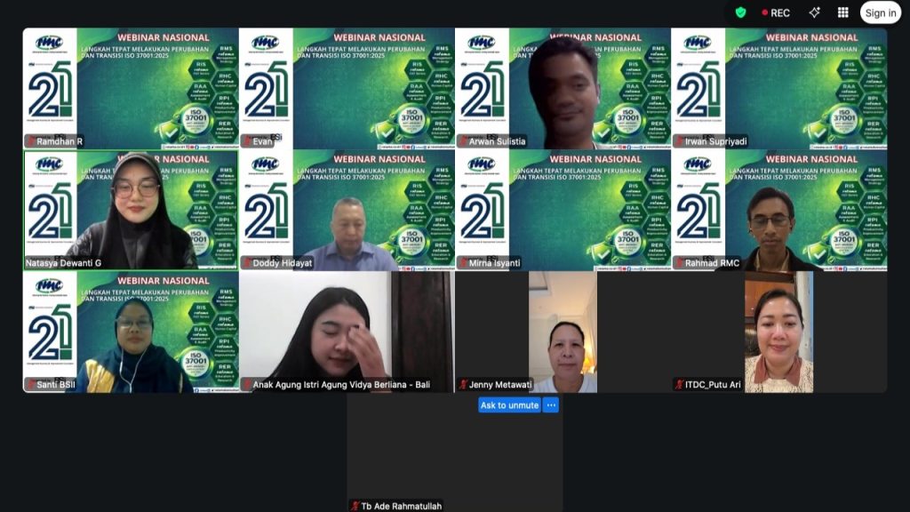 Menjawab kebutuhan tersebut, RMC berkolaborasi dengan PT Barometer Standar Industri Internasional (BSII) menyelenggarakan Webinar Nasional bertajuk “Langkah Tepat Melakukan Perubahan dan Transisi ISO 37001:2025” pada Jumat, 15 April 2026. Kegiatan ini menjadi forum strategis untuk memberikan pemahaman komprehensif kepada organisasi dalam menghadapi masa transisi standar terbaru secara terarah dan efektif.